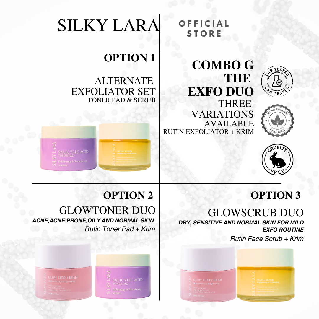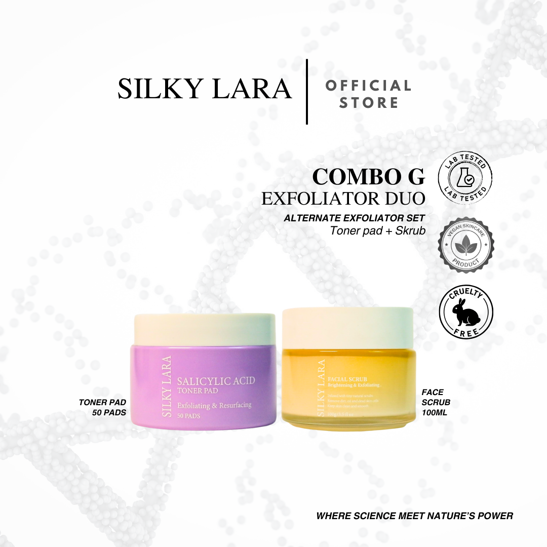 SILKY LARA COMBO G : EXFOLIATOR COMBO : MOISTURIZER ,FACIAL SCRUB & TONER PAD
